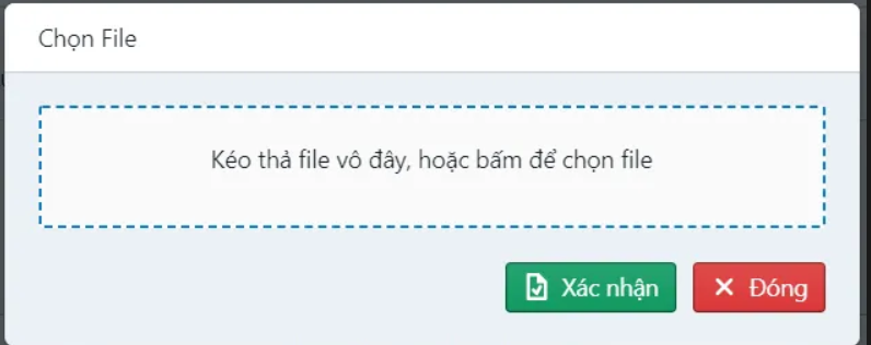 Bước 3 : chọn đến file excel mẫu đã có nhập dữ liệu và bấm nút Xác nhân