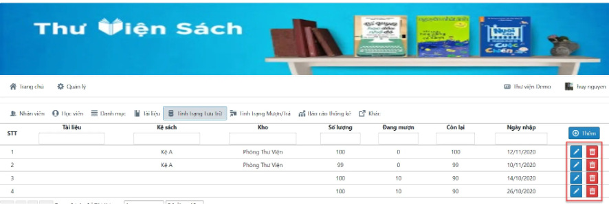 Lưu ý : để sửa hoặc xóa 1 tài liệu bấm vào nút sửa, xóa tương ứng của tài liệu như hình