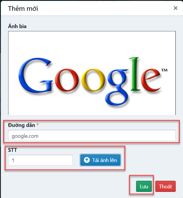 - Đường dẫn : đường dẫn liên kết đến trang mong muốn. ví dụ : google.com