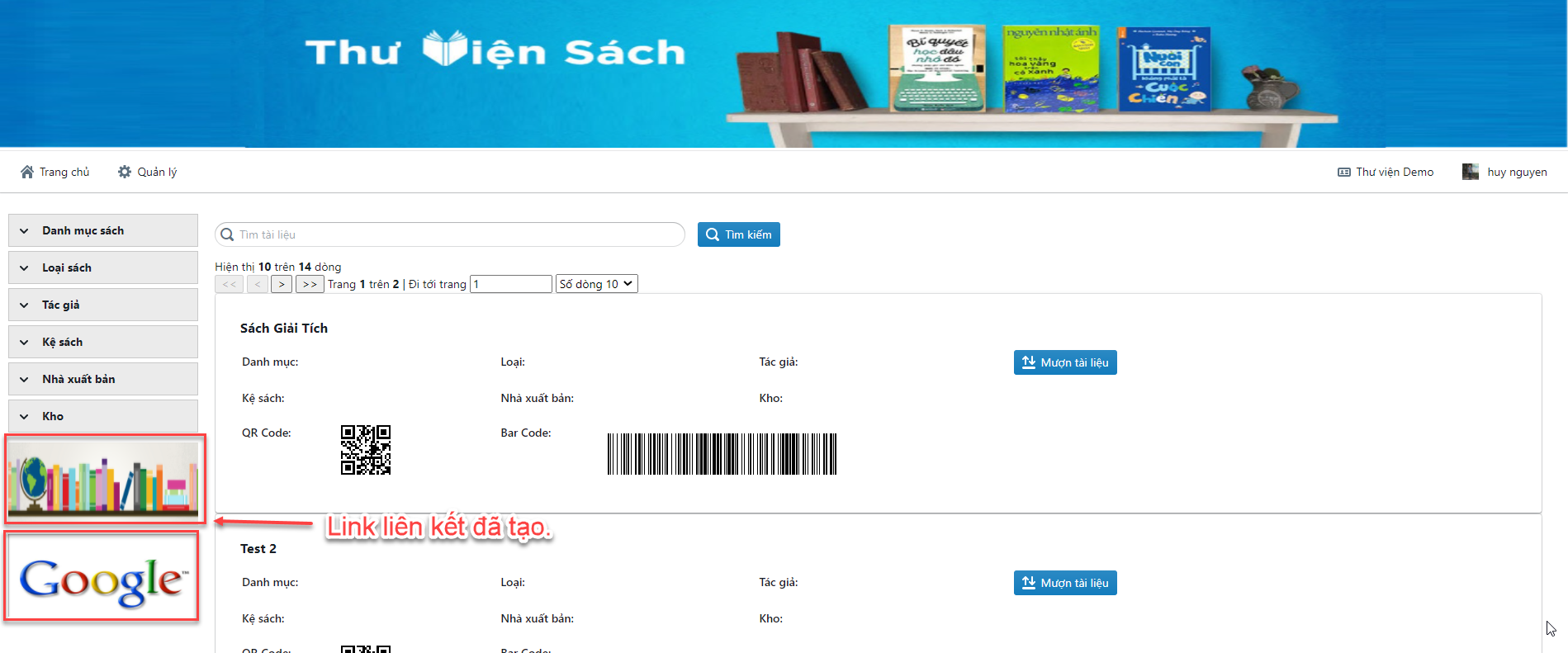 Sau khi lưu xong ở giao diện trang chủ sẽ hiển thị link liên kết vừa tạo. Người dùng có thể bấm vào các link liên kết này để đi tới trang liên kết mong muốn.