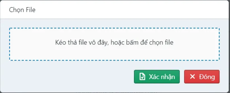 Bước 3 : chọn đến file excel mẫu đã có nhập dữ liệu và bấm nút Xác nhân