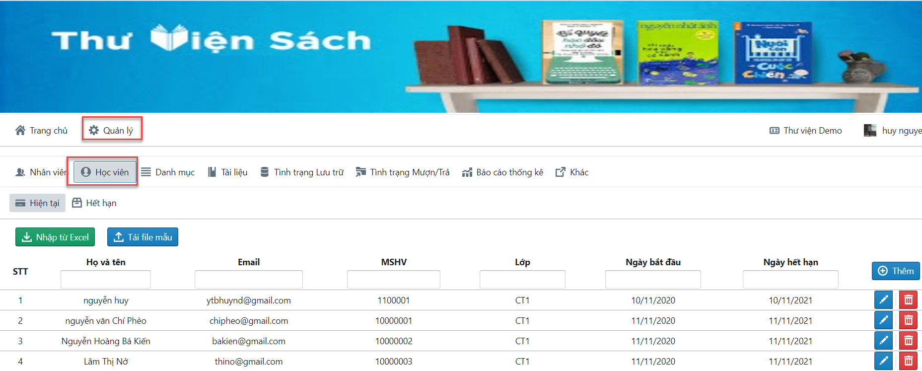 2. Thêm nhiều học viên bằng file excel